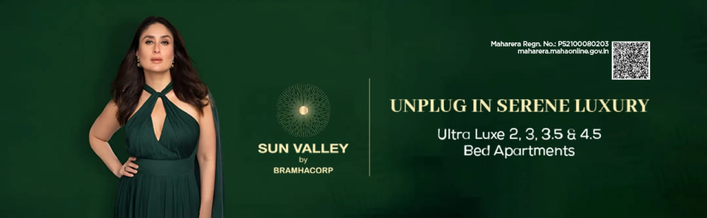 Bramhacorp Sun Valley is an upcoming landmark residential project in Bavdhan, Pune. Spanning 11 acres, this futuristic development features ultra-spacious 2, 3, 3.5, and 4.5 BHK apartments nestled in G+27 floor high-rise towers. The size of the unit ranges from 805 sq. ft to 2115 sq. ft. Designed for those who seek luxury and elegance, this new-launch project promises a sophisticated lifestyle in the heart of Pune.